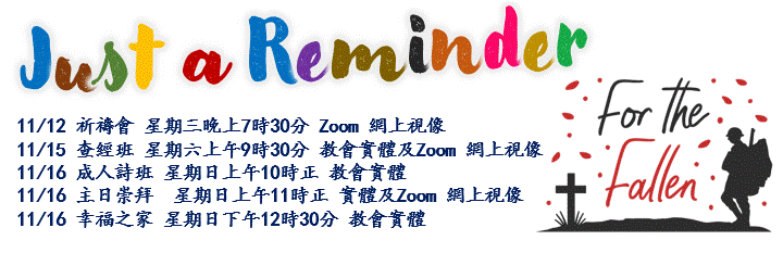 為簡化使用視像碼,教會所有網上視像聚會活動均劃一使用視像號碼896 1589 6812;敬請留意。